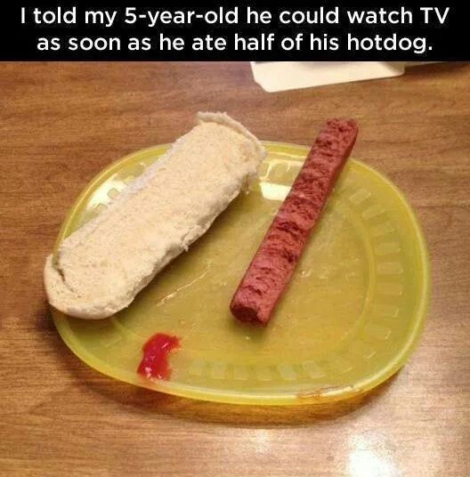 12. Όταν λες στο παιδί σου ότι αν φάει τη μισή του μερίδα, θα μπορέσει να δει τηλεόραση και κάνει αυτό: