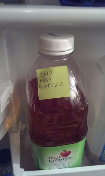 7. Ο χυμός είναι άθλιος: αυτό το παιδί είτε ήθελε να προειδοποιήσει τον επόμενο… καταναλωτή είτε να τον κρατήσει για τον εαυτό του.