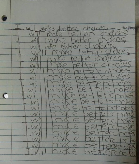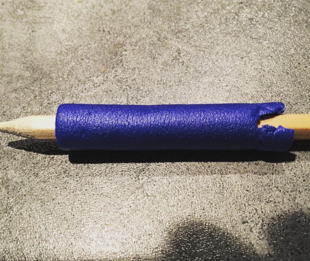 11. Αυτό το παιδί έκανε μια χαλασμένη αφρώδη σφαίρα του όπλου του, βάση στήριξης για το μολύβι του.