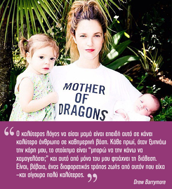 «Ο καλύτερος λόγος να είσαι μαμά είναι επειδή αυτό σε κάνει καλύτερο άνθρωπο σε καθημερινή βάση. Κάθε πρωί, όταν ξυπνάω την κόρη μου, το στοίχημα είναι “μπορώ να την κάνω να χαμογελάσει;” και αυτό από μόνο του μου φτιάχνει τη διάθεση. Είναι, βέβαια, ένας διαφορετικός τρόπος ζωής από αυτόν που είχα –και σίγουρα πολύ καλύτερος.»