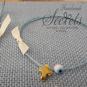 Βραχιολάκι από κορδέλα με σταυρό και ματάκι