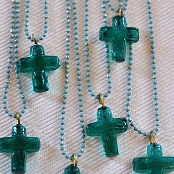 Θα χρειαστείτε μεταλλικές λεπτές αλυσίδες και γυάλινα σταυρουδάκια.