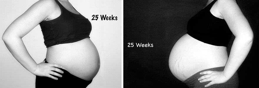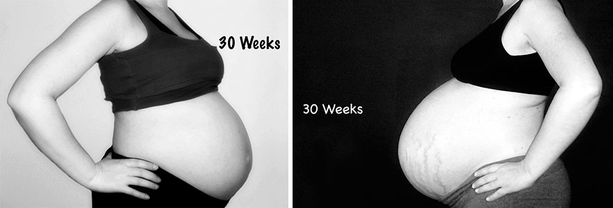 Αυτές οι φωτογραφίες δείχνουν τις διαφορές στο μέγεθος της κοιλιάς μου, στις δύο εγκυμοσύνες. Δείχνουν, επίσης, τους υπερήχους των αντίστοιχων εβδομάδων.
