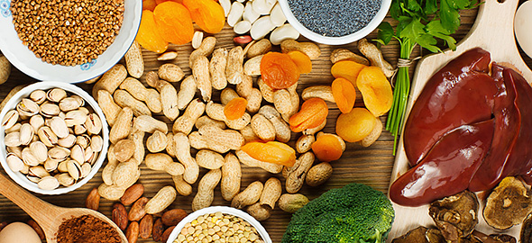 Οι πλουσιότερες τροφές σε σίδηρο είναι το μοσχάρι και άλλα κόκκινα κρέατα (ειδικά το συκώτι), η γαλοπούλα, το χοιρινό, το σπανάκι, τα όσπρια και τα ξερά δαμάσκηνα.