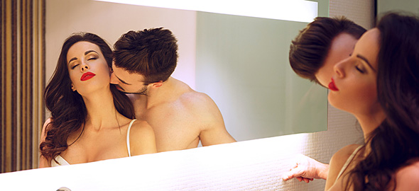 Ναι, ο καθρέφτης λειτουργεί για έναν περίεργο λόγο σαν αφροδισιακό. Βάλτε τα πιο σέξι εσώρουχά σας και στηθείτε και οι δύο μπροστά απ’ τον καθρέφτη. Αγγίξτε ο ένας τον άλλον, φιληθείτε παθιασμένα και αφήστε τον να σας γδύσει και να εξερευνήσει το σώμα σας με τα δάχτυλά του ενώ σας βλέπει και στον καθρέφτη. Είναι ένα είδος δικού σας αισθησιακού πορνό που θα τον απογειώσει.