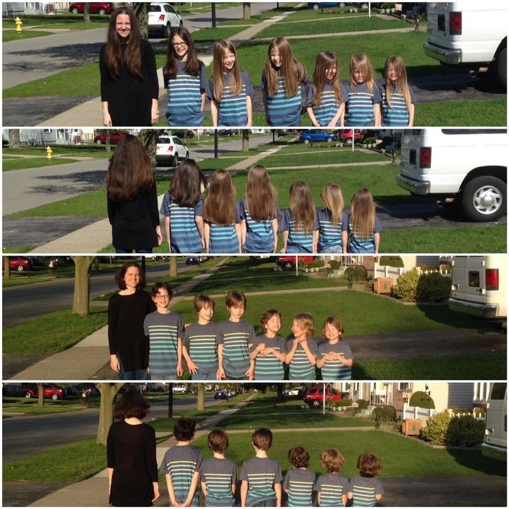 Ο μεγάλος της γιος δεν κουρεύτηκε για ένα χρόνο, οι δίδυμοι για δύο χρόνια και τα τριδυμάκια άφησαν τα μαλλιά τους να μεγαλώσουν επί πέντε ολόκληρα χρόνια. Ποιο ήταν το αποτέλεσμα; Το συνολικό μήκος των κοτσίδων που δώρισαν έφτασε τα 5.20 μέτρα.