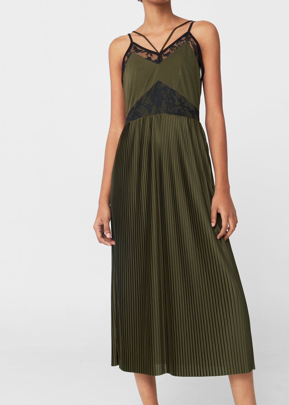 Χακί πλισέ φόρεμα με γεύση από τα 60s