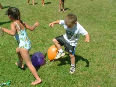 Δέστε με ένα σπάγγο ένα μπαλόνι στο πόδι κάθε παιδιού. Σφυρίξτε την έναρξη κι αφήστε τα παιδιά να κυνηγηθούν προσπαθώντας να σπάσει το ένα το μπαλόνι του άλλου. Νικητής είναι όποιος καταφέρει να διατηρήσει το μπαλόνι του ζωντανό.