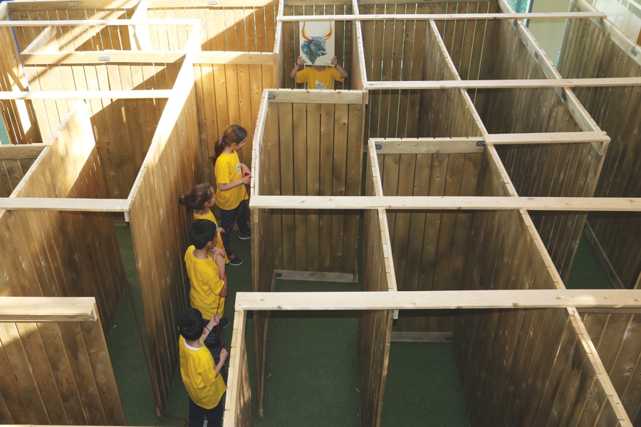 Το παιδικό πάρτι περιλαμβάνει, εκτός του παιχνιδιού με τον λαβύρινθο, ανασκαφή στο σκάμμα για ανεύρεση αρχαίων θησαυρών, κατασκευή κιόνων με γύψο και νερό, γνωριμία και διαδραστικό παιχνίδι με τους θεούς του Ολύμπου, αλλά και παιχνίδι των Άθλων του Ηρακλή. Όπως και στην «Φάρμα», ακολουθεί παιχνίδι και φαγητό για όλους.