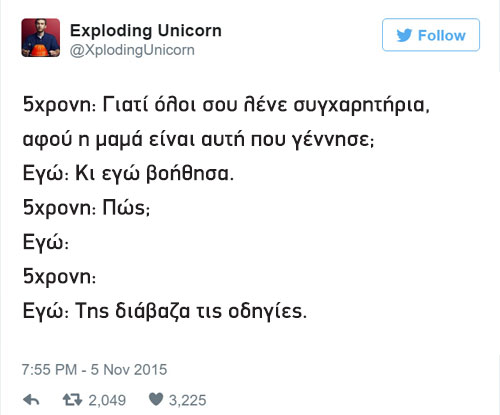 Από τη σελίδα του Exploding Unicorn το Boredpand συγκέντρωσε τα καλύτερα εξ αυτών και… αν έχετε παιδιά, είμαστε σίγουροι ότι θα τα απολαύσετε.