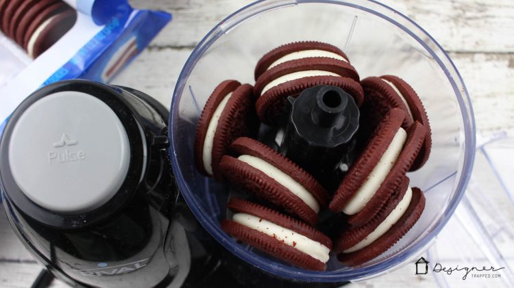 Όταν θρυμματίσετε εντελώς τα μπισκότα, θα πρέπει η κρέμα των oreo να μην ξεχωρίζει. Σ’ αυτό το στάδιο, προσθέστε στο μίξερ το τυρί-κρέμα, λίγο-λίγο.