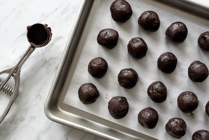 Αν θέλετε να ακολουθήσετε κατά γράμμα τη συνταγή, τότε πλάστε σοκολατάκια στο μέγεθος περίπου ενός κουταλιού του γλυκού.
