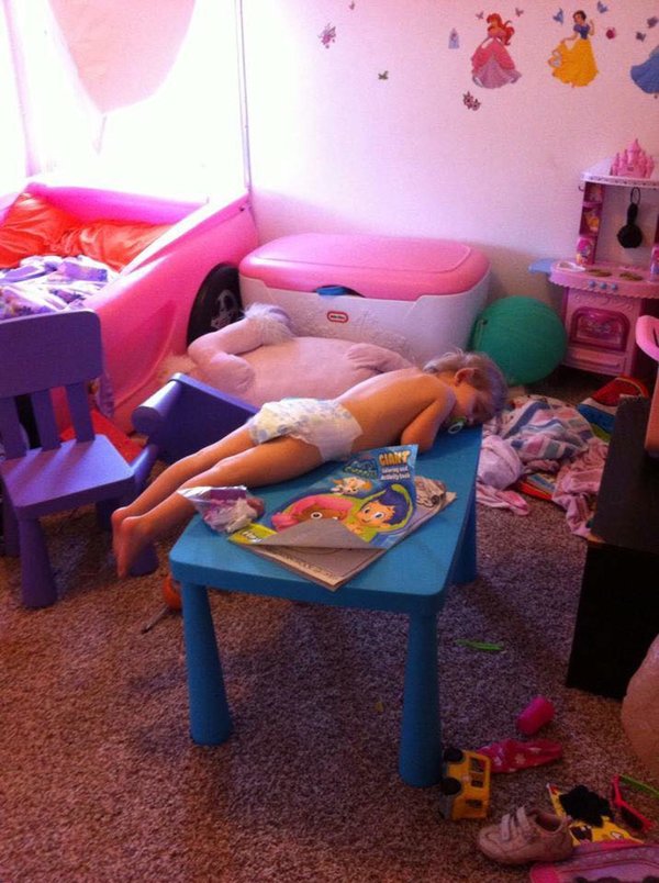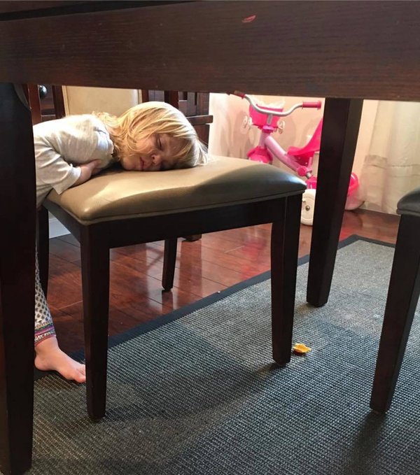 3. Ύπνος στην τραπεζαρία για να πιάσει την καλή θέση την ώρα του φαγητού!
