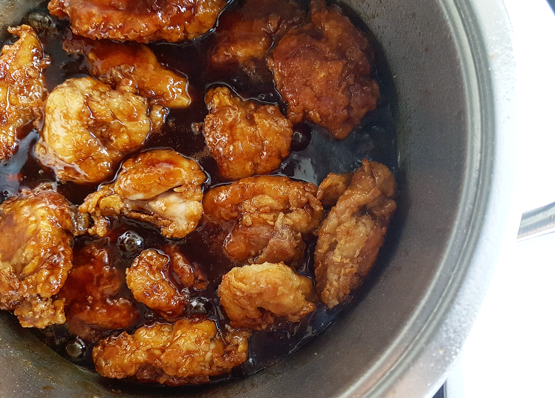 Ρίξτε όλα τα κομμάτια κοτόπουλου μέσα στην κατσαρόλα και περιχύστε την σάλτσα. Αν θέλετε πολύ σάλτσα, απλά διπλασιάστε την ποσότητα!