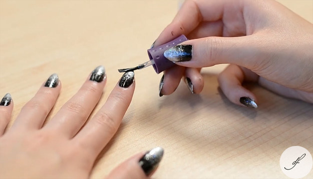 Το κόλπο για να μην χρειαστεί να ξεβάψετε και να ξαναβάψετε τα νύχια σας από την αρχή, είναι να προσθέσετε στις ξεφτισμένες άκρες τους μια λωρίδα μανό σε άλλο χρώμα ή γκλίτερ και να το μετατρέψετε σε γαλλικό στο άψε- σβήσε.