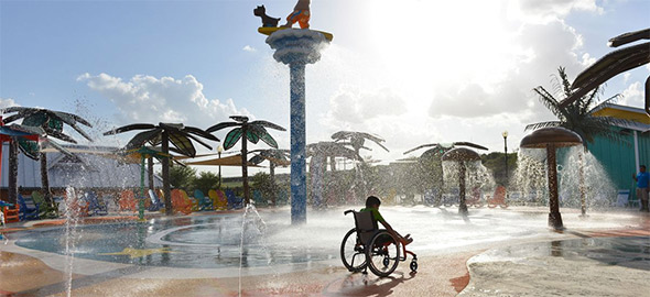 Μάλιστα, στο πάρκο προσφέρονται δωρεάν και ειδικά αναπηρικά καροτσάκια που κινούνται με αέρα, φτιαγμένα έτσι ώστε να είναι ανθεκτικά στην υγρασία, για να μην κινδυνεύσουν να καταστραφούν τα κανονικά, πανάκριβα καροτσάκια, των ατόμων με αναπηρία.