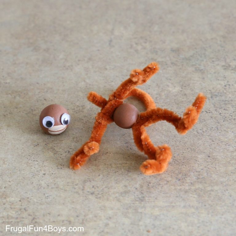 Το τρίτο από τα πάνω συρματάκια θα είναι ο λαιμός της μαϊμουδίτσας σας. Κόψτε το τόσο, όσο να μην περισσεύει και με λίγη υγρή κόλλα, κολλήστε το κεφάλι, αφού προηγουμένως θα το έχετε φτιάξει (κολλώντας τα μάτια και ζωγραφίζοντας το στόμα).