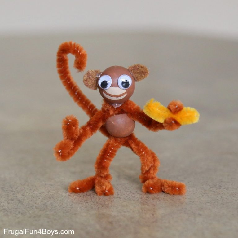 Κόψτε ένα μικρό κομματάκι κίτρινο σύρμα για να σχηματίσετε την μπανάνα της μαϊμουδίτσας και «ασφαλίστε» το στο ένα της χέρι.