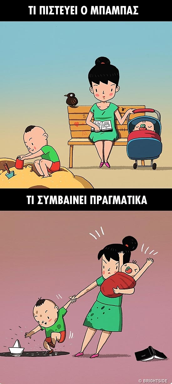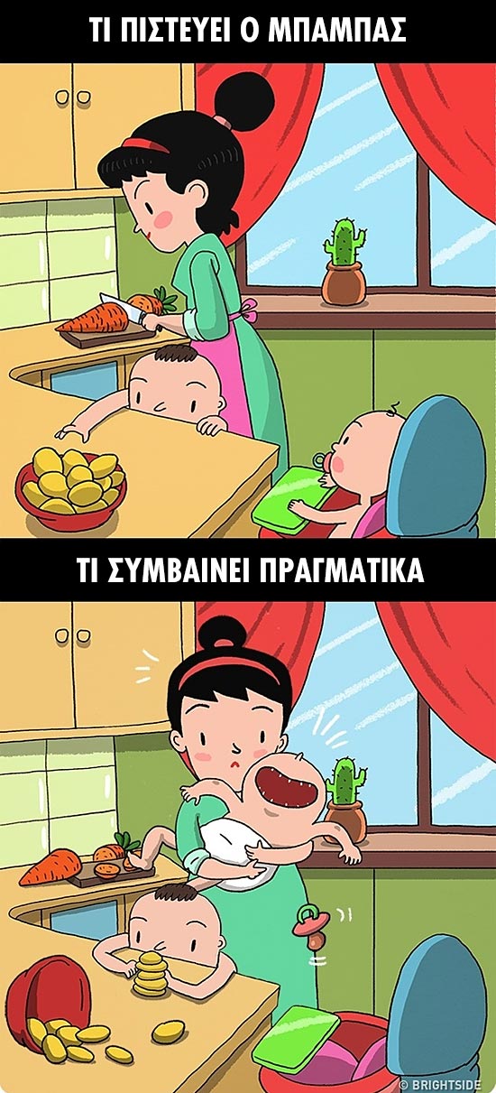 Πολλοί μπαμπάδες, όμως, δεν το βλέπουν έτσι. Θεωρούν ότι η ζωή της μαμάς που δεν εργάζεται και μένει στο σπίτι για να φροντίσει τα παιδιά, είναι στρωμένη με ροδοπέταλα. Λοιπόν, να σας ενημερώσουμε -όσο κι αν σας εκπλήσσει- πως τα πράγματα, δεν είναι ακριβώς έτσι…