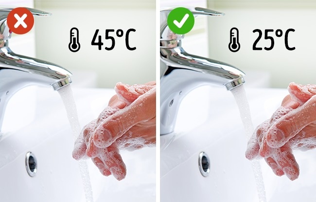 Ναι, το ζεστό νερό σκοτώνει τα μικρόβια. Ναι καθαρίζει σε βάθος και ναι, το έχουμε συνηθίσει. Όμως, αφυδατώνει και ξηραίνει τα χέρια. Η ιδανική θερμοκρασία, λοιπόν, είναι περίπου στους 25 βαθμούς Κελσίου και για να μην μας πείτε εύλογα «Κι εγώ πού ξέρω πότε το νερό έχει 25 βαθμούς;», θα σας πούμε απλά ότι πρέπει να είναι ζεστό προς χλιαρό και σίγουρα όχι καυτό.