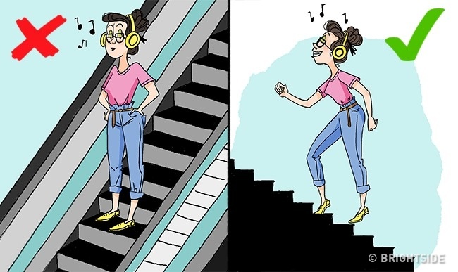 -Σταματήστε να χρησιμοποιείτε ασανσέρ και κυλιόμενες σκάλες και ανεβοκατεβείτε με τη σκάλα.