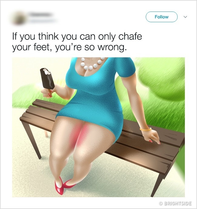 Το χειρότερο το αφήσαμε για το τέλος: Οι μηροί που ιδρώνουν μεταξύ τους και τρίβονται μέσα από το φόρεμα και τη φούστα.
