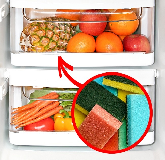 Στα συρτάρια και τα ράφια του ψυγείου συσσωρεύεται η υγρασία, που κάνει τα φρούτα και τα λαχανικά να «χαλάνε» πιο γρήγορα. Τα στεγνά (και καινούρια φυσικά) σφουγγάρια που θα τοποθετήσετε ανάμεσά τους θα απορροφήσουν τα έξτρα υγρά και θα διατηρήσουν για περισσότερο διάστημα φρέσκα τα τρόφιμα.