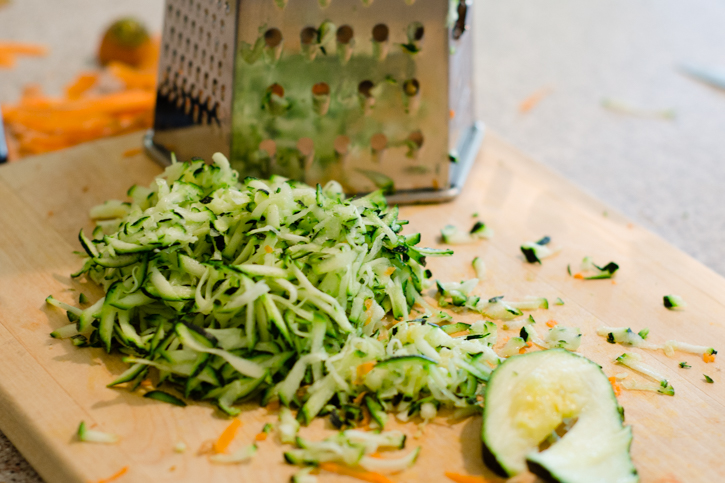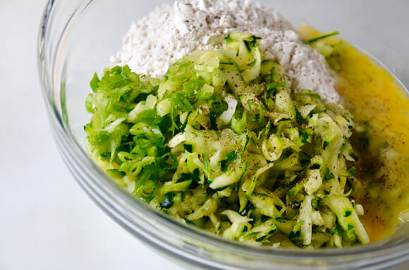 Αφού τρίψετε τα κολοκύθια, βάλτε τα σε ένα μπολ και πασπαλίστε με λίγο αλάτι. Έπειτα, πιέστε τα με τα χέρια σας για να απομακρύνετε τα υγρά τους. Αφήστε τα να ξεκουραστούν για μισή ώρα και στη συνέχεια επαναλάβετε για να φύγουν και τα υπόλοιπα υγρά.