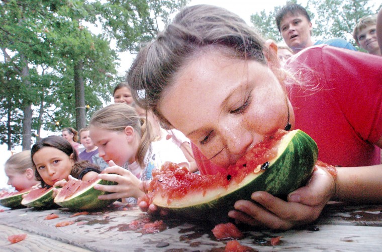 Μια φέτα καρπούζι για κάθε παιδί, χέρια δεμένα για περισσότερη πλάκα και ο γρηγορότερος κερδίζει.