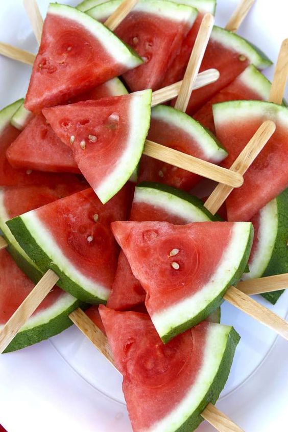 Υγιεινό, δροσερό και πρωτότυπο. Απλώς κόψτε σε μικρά τρίγωνα το καρπούζι και βάλτε στο καθένα ένα ξυλάκι παγωτού. Εννοείται, ότι θα χρειαστεί φορητό ψυγειάκι για τη συντήρησή τους.