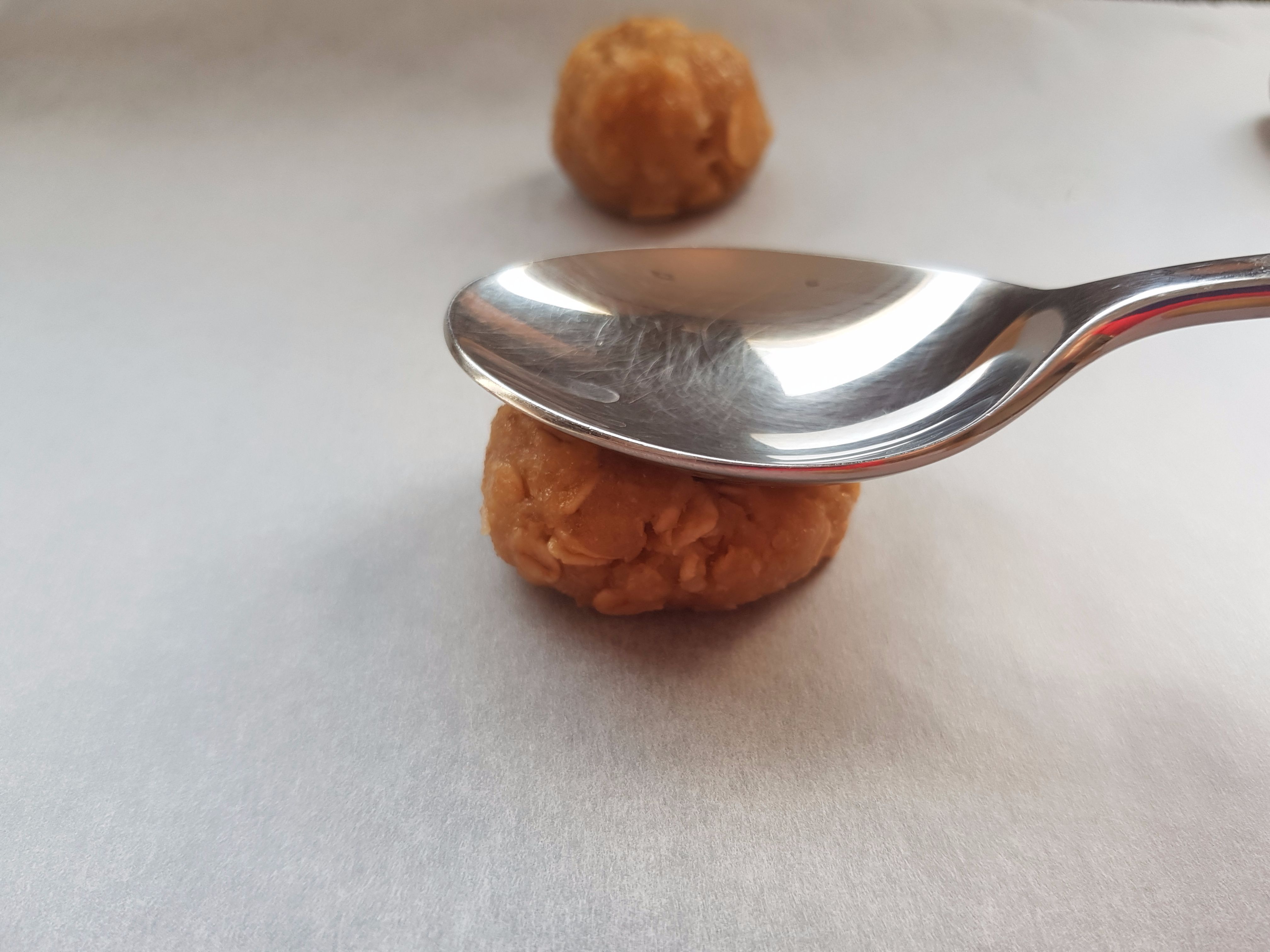 Πλάθετε μπαλίτσες στο ίδιο μέγεθος και τις βάζετε σε απόσταση δύο δάχτυλα τη μια από την άλλη, πάνω στη λαδόκολλα.