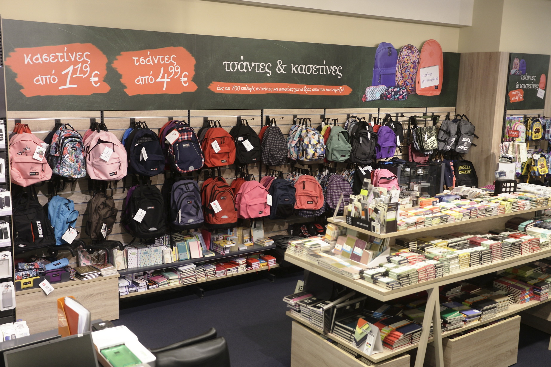 · Σχολικές τσάντες, σακίδια και τσάντες-τρόλεϊ για το νηπιαγωγείο και το δημοτικό, σε πρωτότυπα σχέδια με διάσημους ήρωες, όπως Barbie, Cars, Χελωνονιντζάκια, Avengers, Frozen, hello kitty, Mickey & Minnie, Minions, Spiderman. Trolls, Πέπα, Starwars, Lego, Emoji, Shopkins, σε τιμές που ξεκινούν από €4,99, αλλά και τσάντες για μαθητές μεγαλύτερης ηλικίας για πιο urban εμφανίσεις