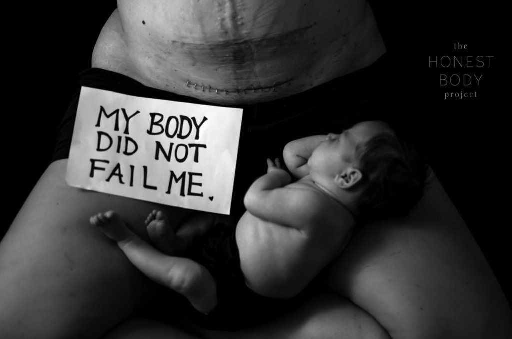 Τα σημάδια από την επέμβαση είναι εμφανή ενώ δίπλα τους «ποζάρει» το νεογέννητο μωράκι της -το δώρο που άξιζε κάθε ταλαιπωρία! Η φράση: «Το σώμα μου δεν με απογοήτευσε», τα λέει όλα...
