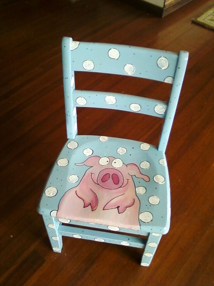 Βάψτε την καρέκλα του παιδιού αν είναι ξύλινη στο αγαπημένο του χρώμα, ή αν το έχετε με τη ζωγραφική, μεταμορφώστε την με πολύχρωμα και αστεία σχέδια, όπως αυτό το γουρουνάκι.