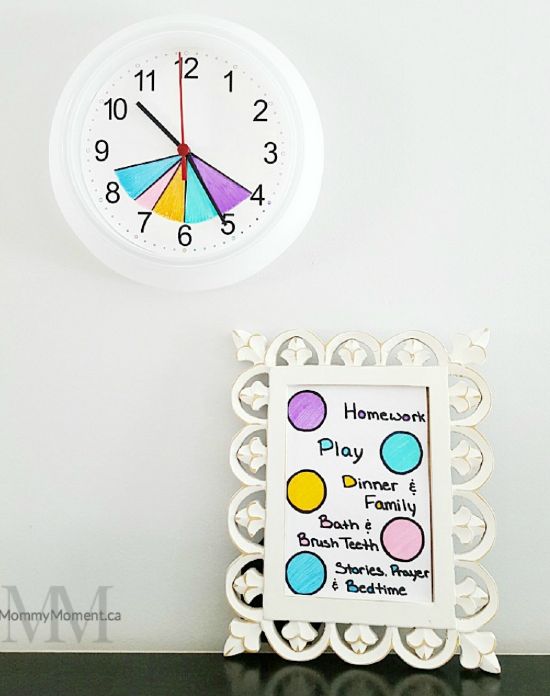 Φτιάξτε ένα ειδικό ρολόι- πρόγραμμα, ζωγραφίζοντας την κάθε ώρα ανάλογα με το τι έχει να κάνει το παιδί.