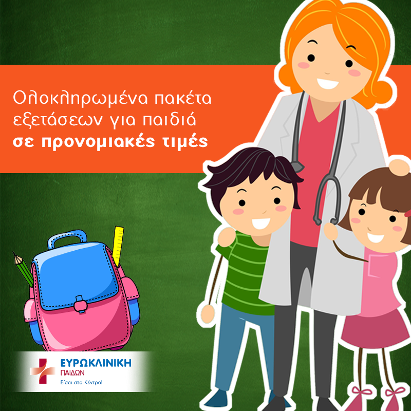 Και αν δεν είστε ένας από τους νικητές του διαγωνισμού, η Ευρωκλινική Παίδων προσφέρει ειδικές τιμές για τα παρακάτω πακέτα ιατρικών εξετάσεων: