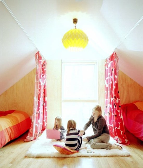 Ή με μία κουρτίνα μπροστά από κάθε κρεβάτι για να απομονώνεται το κάθε παιδί στο «καταφύγιό» του, όποτε θέλει.