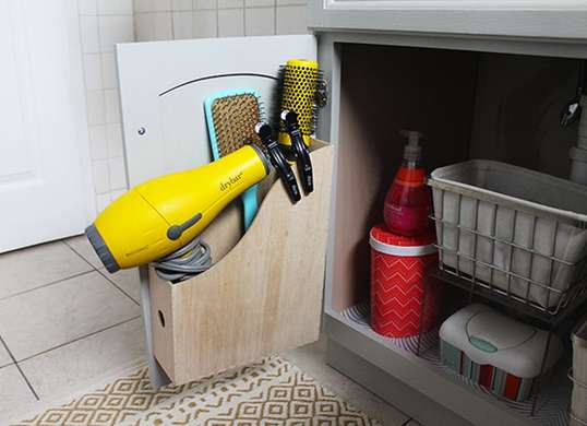 Μία θήκη για περιοδικά μπορεί να χρησιμοποιηθεί για το πιστολάκι, το ισιωτικό μαλλιών και τις βούρτσες σας.