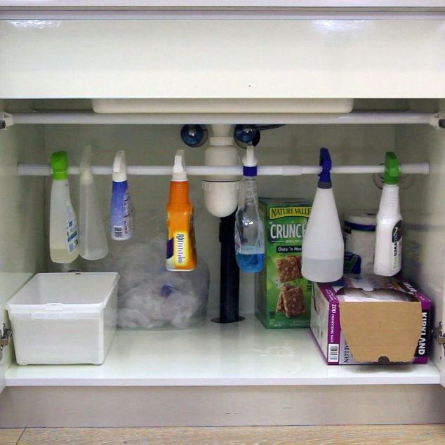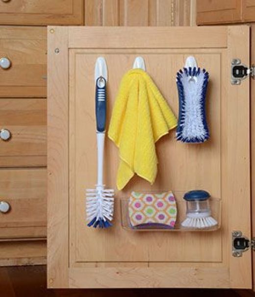 Σε πλαστικούς γάντζους, κρεμάστε τις βούρτσες και τα πανιά που δεν θέλετε να ακουμπάνε στα υπόλοιπα πράγματα.