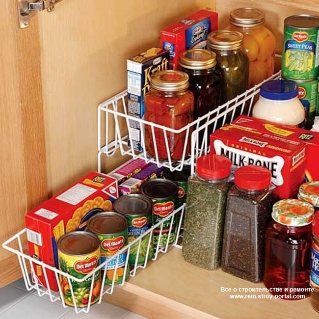Οι κονσέρβες και τα γυάλινα βάζα μπορούν να μπουν σε μια μακρόστενη ραφιέρα, κάπως έτσι: