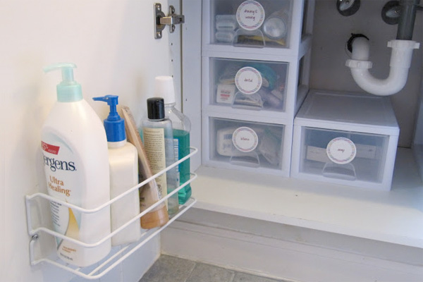 Τα καθαριστικά ή τα καλλυντικά σας μπορείτε να τα τοποθετήσετε σε μια παπουτσοθήκη στην πόρτα του μπάνιου.