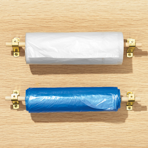 Αν δεν θέλετε ο κάδος σκουπιδιών να πιάνει χώρο κάτω απ’ τον νεροχύτη σας, την ίδια δουλειά μπορεί να κάνει και μια πλαστική σακούλα. Διαφορετικά, μπορείτε να τη στερεώσετε έτσι για να αποθηκεύετε τις υπόλοιπες σακούλες: