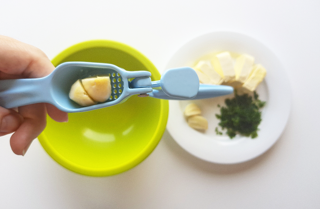 Σε ένα μπολ μικρό, πολτοποιήστε το σκόρδο και μαζί με το βούτυρο, τον μαϊντανό και 1/2 κουταλάκι του γλυκού αλάτι ανακατέψτε καλά.