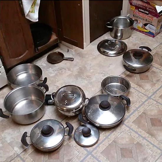Είναι πολύ πιθανό ο δράστης να χρησιμοποίησε τα μαγειρικά σκεύη της μητέρας του ως ντραμς. Οι αρμόδιες αρχές έχουν εξαπολύσει ανθρωποκυνηγητό για τον εντοπισμό του.