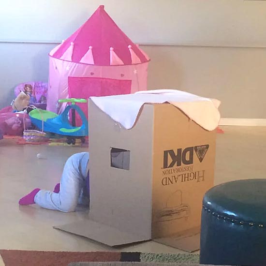 Πίσω, βλέπετε μία καινούρια σκηνή που αγόρασαν αυτοί οι γονείς στην κόρη τους. Μπροστά, βλέπετε την κόρη τους που παίζει με μια χάρτινη κούτα της σκηνής.