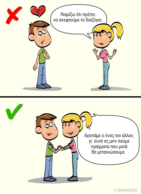 Η απειλή του διαζυγίου μπορεί να οδηγήσει όντως στον χωρισμό. Αρχικά, εκφοβίζοντας τον σύντροφό σας, τον πληγώνετε. Στη συνέχεια, όμως, απλώς τον κουράζετε- γι’ αυτό μην εκπλαγείτε αν εκείνος τελικά είναι αυτός που θα σας ζητήσει να χωρίσετε και θα το εννοεί. Να θυμάστε ότι μία σχέση περνάει και από πολύ δύσκολες στιγμές, που μπορεί να ξεπεράσει μόνο με τον συμβιβασμό και τη συνεννόηση.