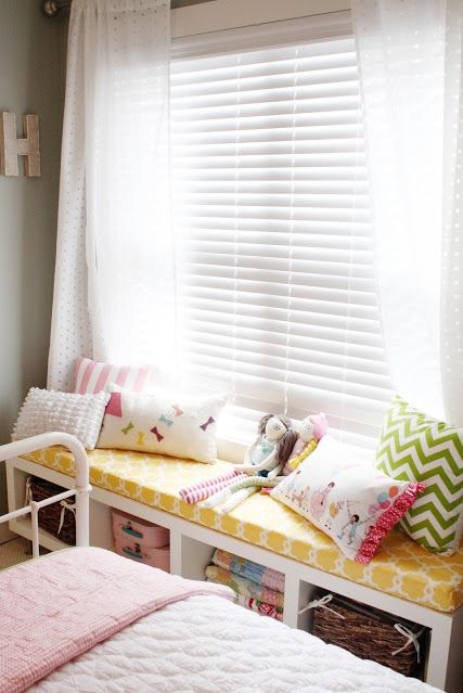 «Ρίξτε» μια μονή βιβλιοθήκη στο πάτωμα, βάλτε από πάνω της μαξιλάρια και χρησιμοποιήστε τα ράφια ως αποθηκευτικό χώρο.