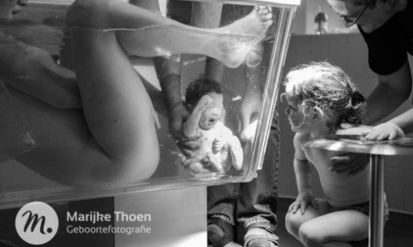 Η μπανιέρα στην οποία γέννησε η μητέρα του, είναι διαφανής κι έτσι καθένας μπορεί να δει όλες τις λεπτομέρειες. Παράλληλα, δίπλα στο μωράκι και έξω απ’ τη μπανιέρα φυσικά, η αδερφή του βρέφους παρακολουθεί τον ερχομό του αδερφού της στον κόσμο. Η Marijke δημοσιοποίησε την φωτογραφία στο Facebook με αποτέλεσμα να κοινοποιηθεί χιλιάδες φορές από άλλους χρήστες.