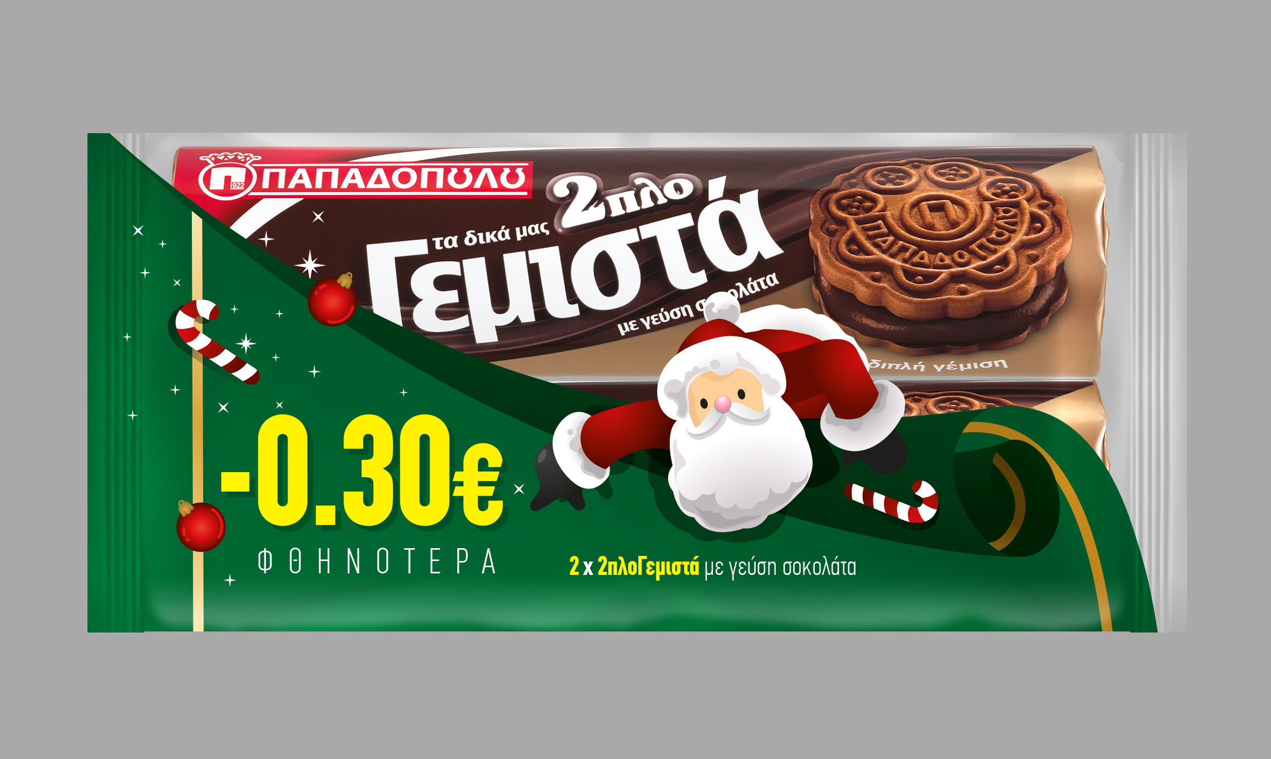 Και επειδή Χριστούγεννα χωρίς λαχταριστές λιχουδιές δεν γίνεται… βρείτε τώρα τις δύο απίθανες γεύσεις των 2πλο Γεμιστών στις πιο εντυπωσιακές συσκευασίες των δύο τεμαχίων με έκπτωση 0,30€.