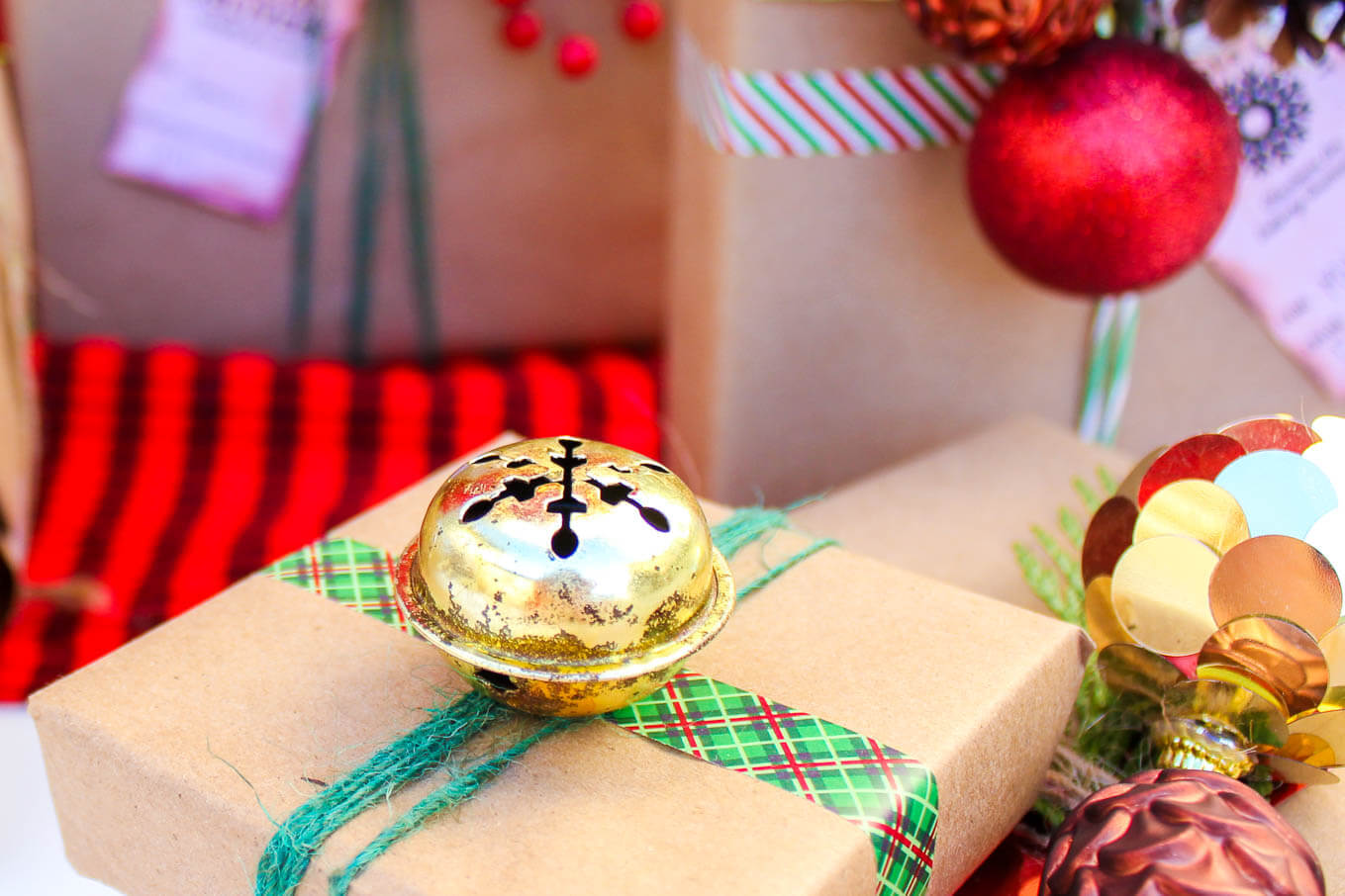 Προσθέστε λίγα στολίδια στο περιτύλιγμα των δώρων που σκοπεύετε να δώσετε για να εντυπωσιάσετε! Φροντίστε μόνο να τα στερεώσετε καλά για να μην σπάσουν. Αν έχουν τρύπα, το τρικ είναι να τα περάσετε μέσα από την κορδέλα που στη συνέχεια θα κάνετε τον φιόγκο.